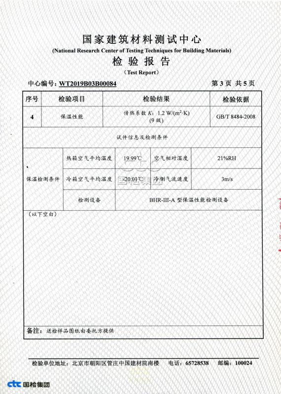 天乙門窗合成木包鋁窗國家建筑材料測試中心檢測報告